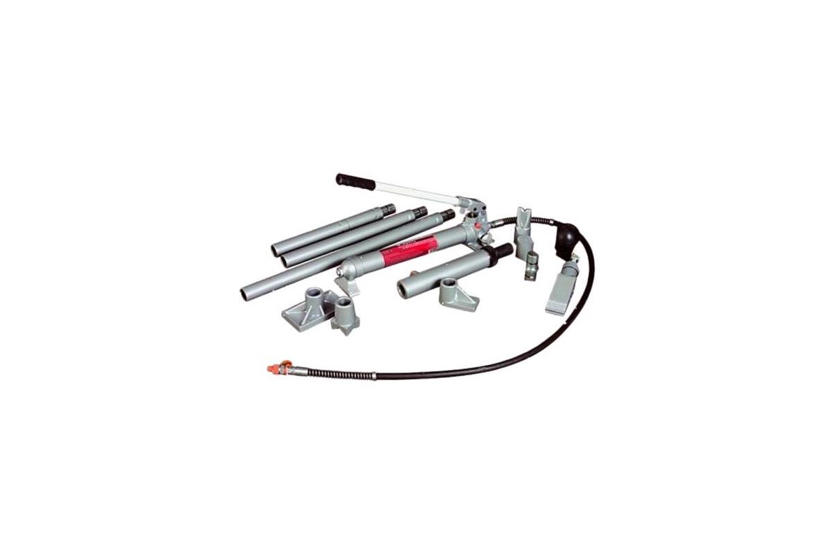 Набор гидравлических растяжек состоит из гидравлического насоса, гидравлического цилиндра, а также удлинителя и комплекта насадок. Унифицированный состав позволяет заменять его и дополнять новыми составляющими. Применяется для рихтовки кузовов автомобилей и различных металлоконструкций. В наборы 51334, 51314, 51340, 51320 входит 12 предметов и 7 сменных насадок, в 51345 – 14 предметов и 9 сменных насадок.