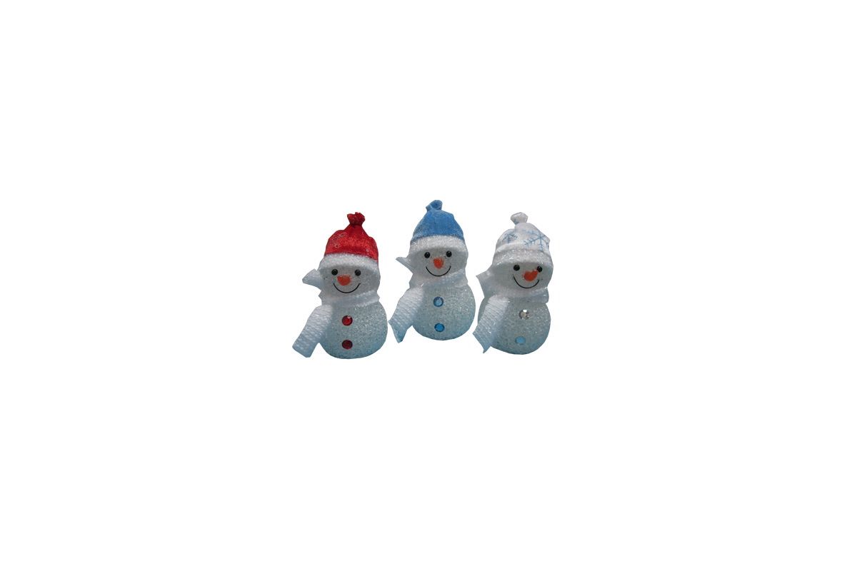 Светодиодный Снеговик. Размер: 7,5*7,5*11,5см. Работа на 3-х батарейках 1,5В, тип AG13 (входят в комплект). В трех расцветках