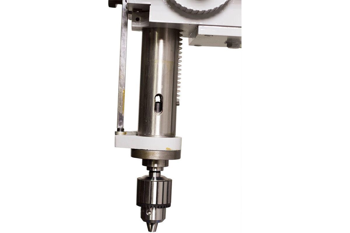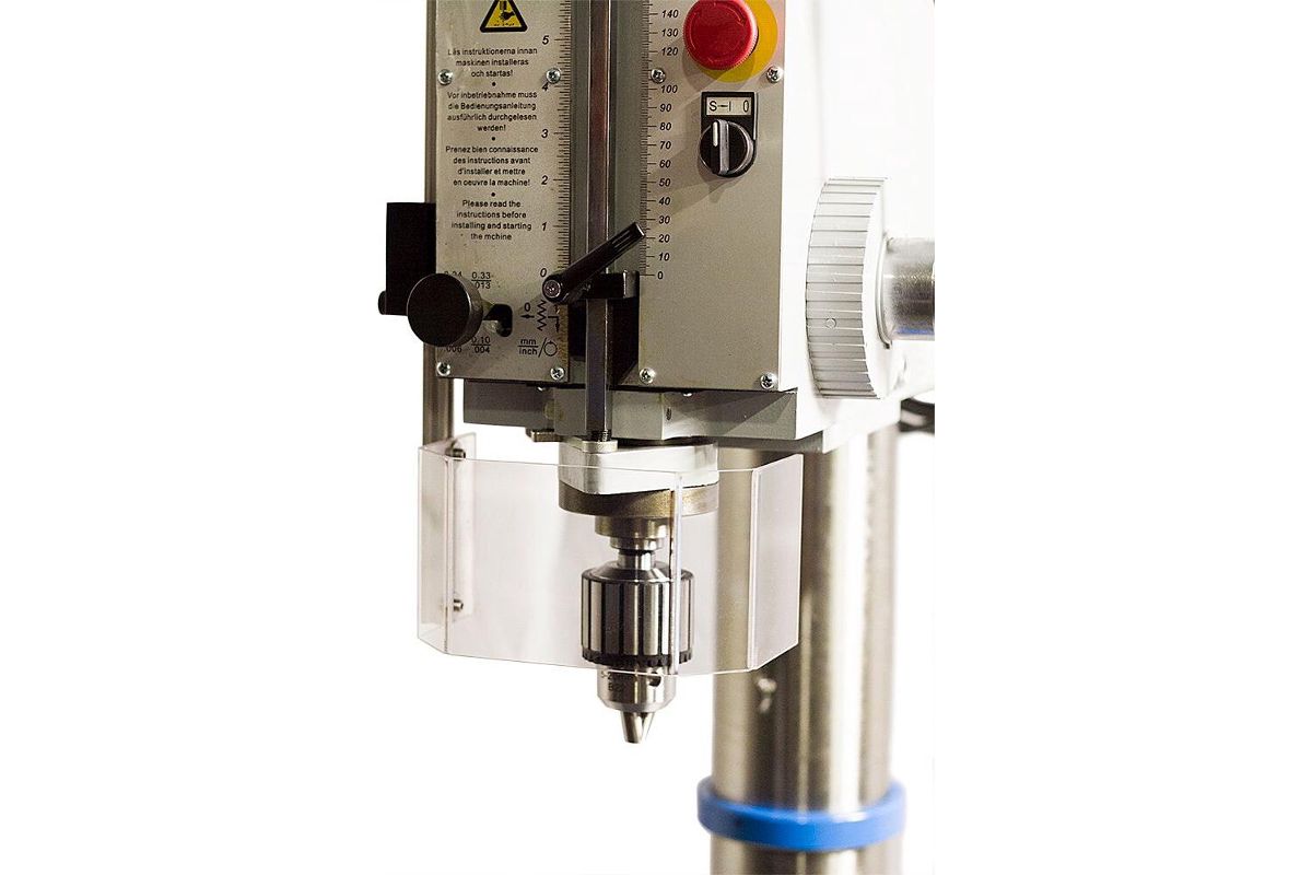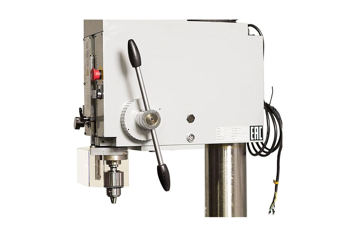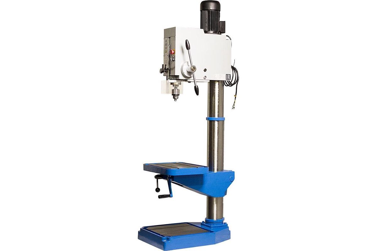 - Вертикальный сверлильный станок предназначается для получения глухих и сквозных отверстий в металлических заготовках. Аварийная кнопка служит для быстрой остановки оборудования в случае чрезвычайной ситуации. Корпус модели выполнен из чугуна, что гарантирует устойчивость и равномерное распределение вибраций во время работы. Специальное прозрачное окошко позволяет своевременно обнаружить необходимость в пополнении уровня масла. Благодаря регулируемому опорному столу возможна обработка деталей разной формы и габаритов.
