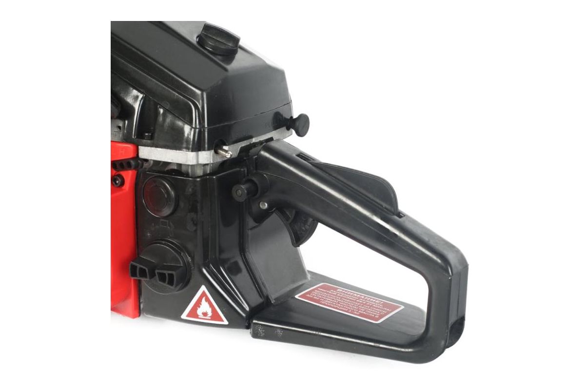 Вращение цепи мгновенно прекращается при нажатии на передний щиток. Предотвращает порезы и другие травмы при обратном ударе.