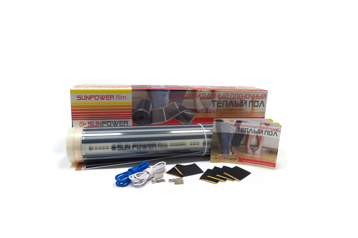 Инфракрасная пленка Sun Power Film представляет собой сверхтонкую (0.4мм) полимерную пленку, которая излучает со своей поверхности дальние инфракрасные лучи (длина волны 5-20 мкм). Нагревательным элементом пленочного обогревателя являются черные графитовые полосы, на которые по медно-серебряным проводникам подается напряжение 220 Вольт переменного тока.