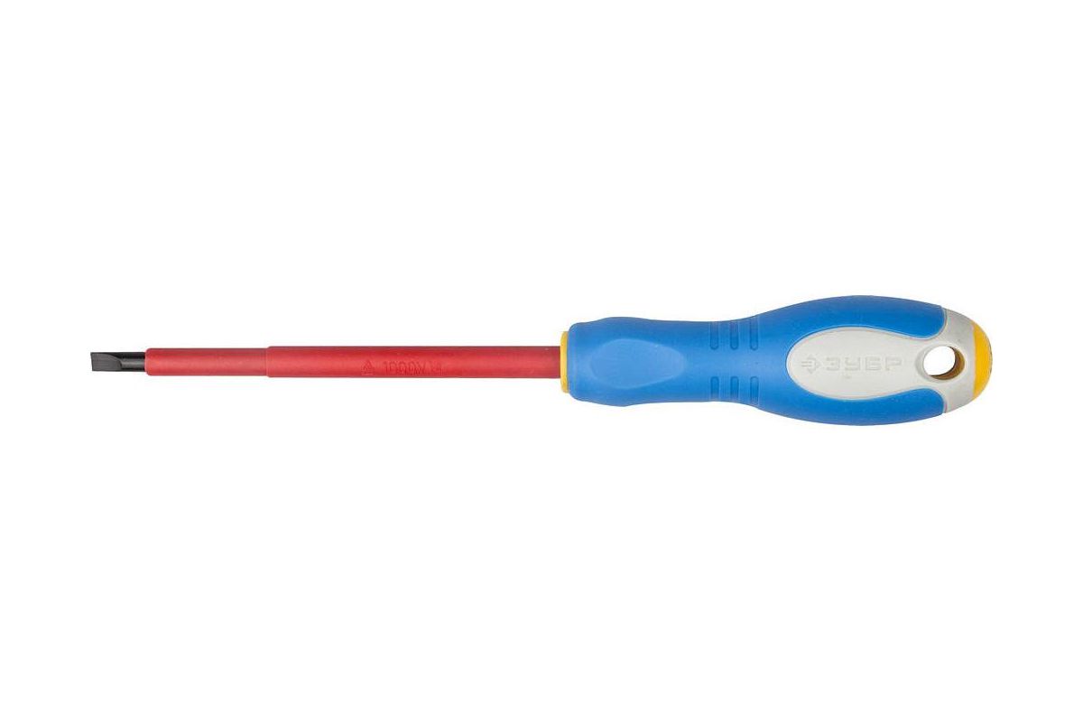 Отвертка диэлектрическая ЗУБР Профессионал ПРОФИ ЭЛЕКТРИК 25261-5.5-125 предназначена для выполнения электромонтажных работ под напряжением до 1000 В.Инструмент разработан в соответствии с высокими требованиями профессионалов. Выдерживает высокие нагрузки благодаря высококачественной хромованадиевой стали, закаленной по особой технологии. Имеет большой ресурс, обеспечивает высокое качество выполнения работ при монтаже и демонтаже резьбовых соединений.