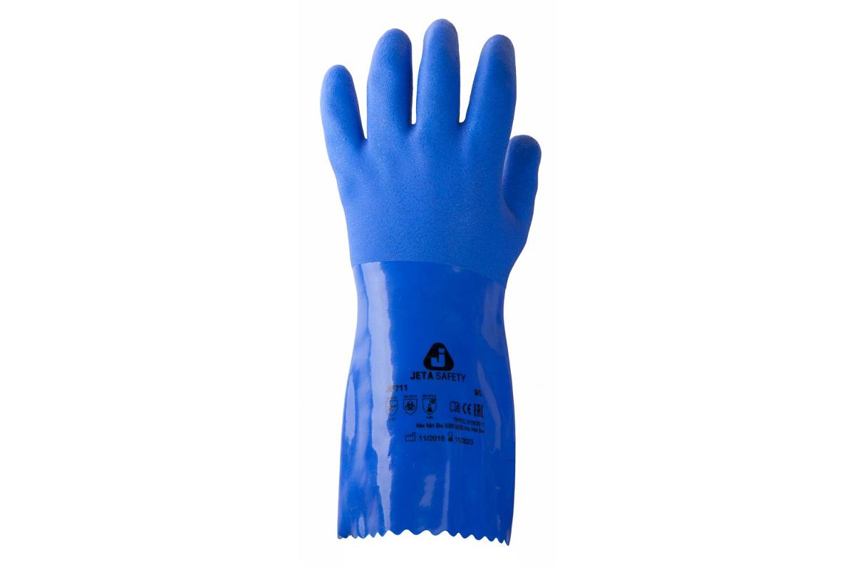 JETA SAFETY JP711 – химические ПВХ перчатки, предназначенные для работ при которых важна высокая химическая устойчивость и механическая защита.