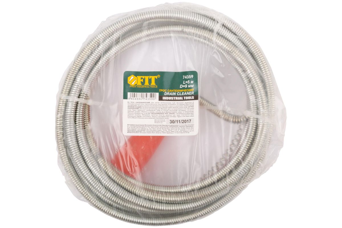 Трос сантехнический. Удобная пластиковая ручка, хромированное покрытие для защиты от коррозии. Спираль на конце троса для более эффективной прочистки.