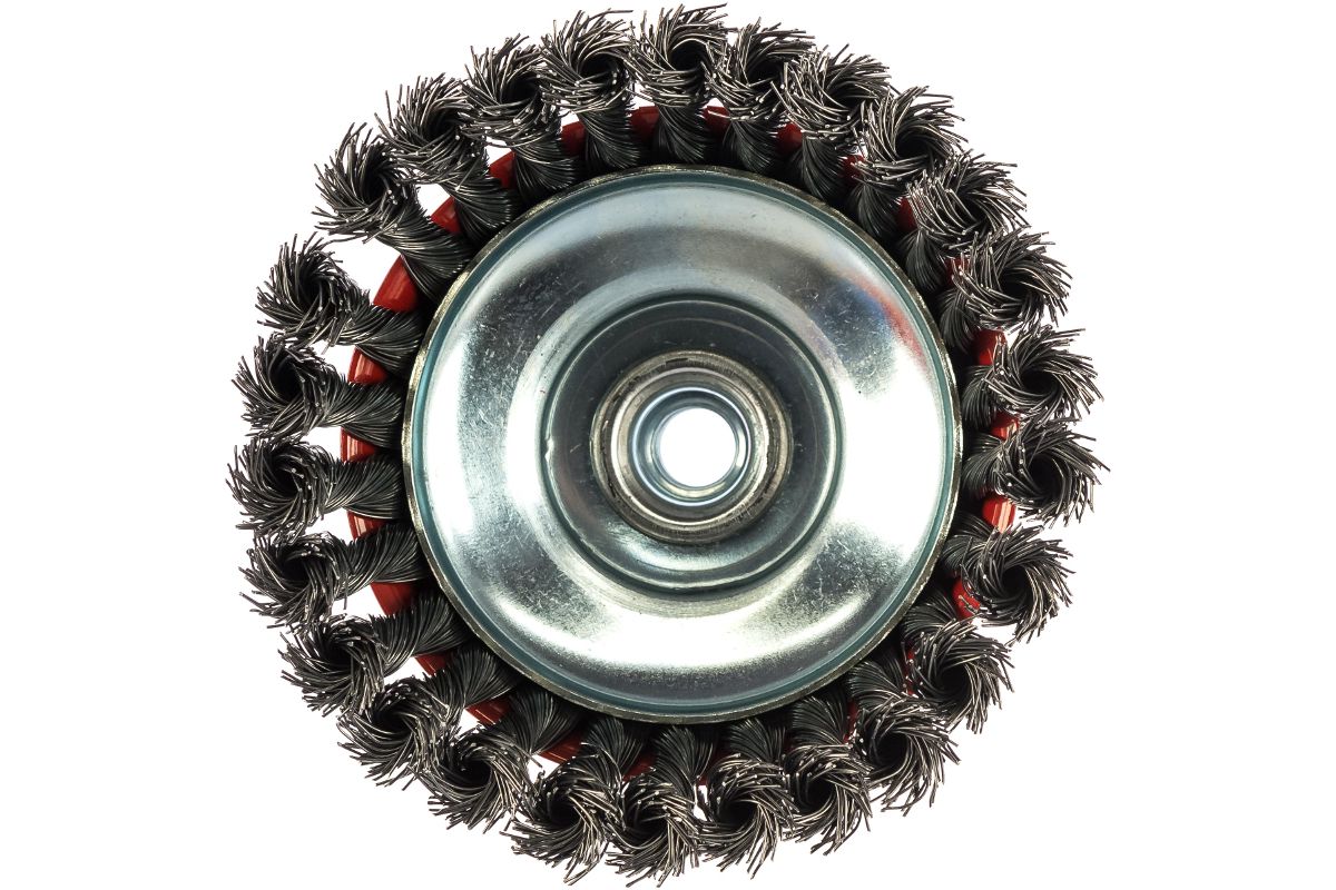 Щетка-крацовка чашечная для УШМ. Эффективно используется для зачистки металлических поверхностей от ржавчины при работе угловой шлифовальной машиной.