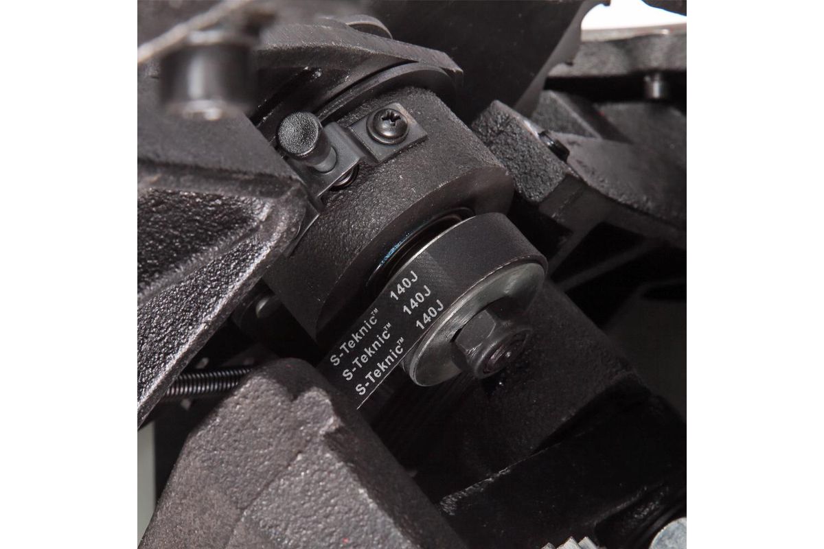 Станок оснащен основным рабочим столом и двумя дополнительными секциями из чугуна. Стол имеет два стандартных паза для установки углового упора или дополнительных приспособлений.